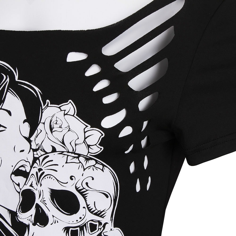 Burning Flowers Hollow Skull Head T-shirts
