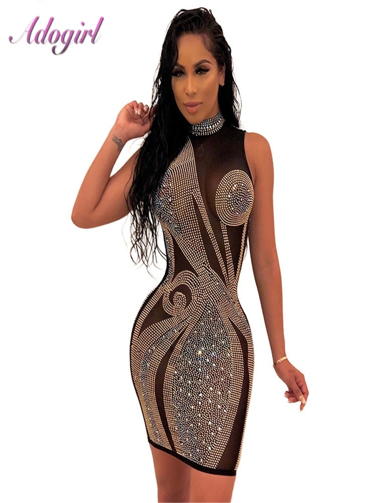 Crystal Diamonds Sheer Mesh Dress