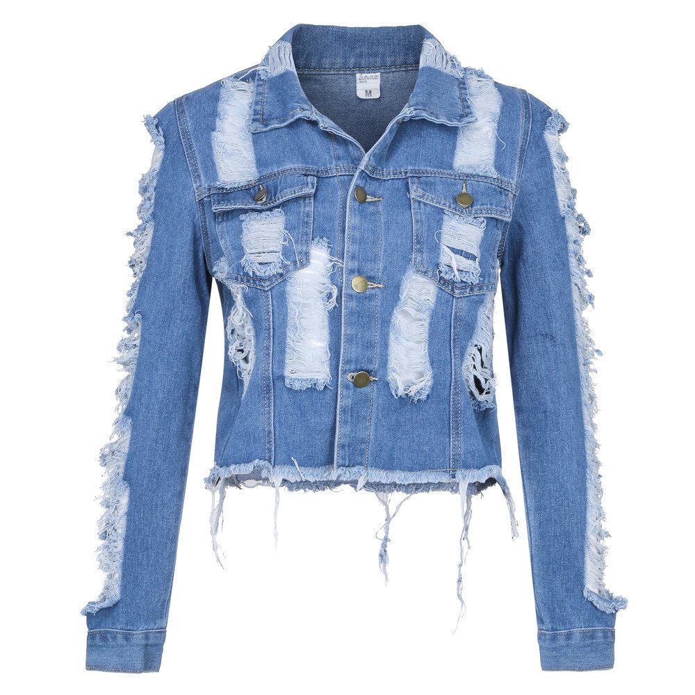 Hole Coat Long Sleeve Denim Jacket
