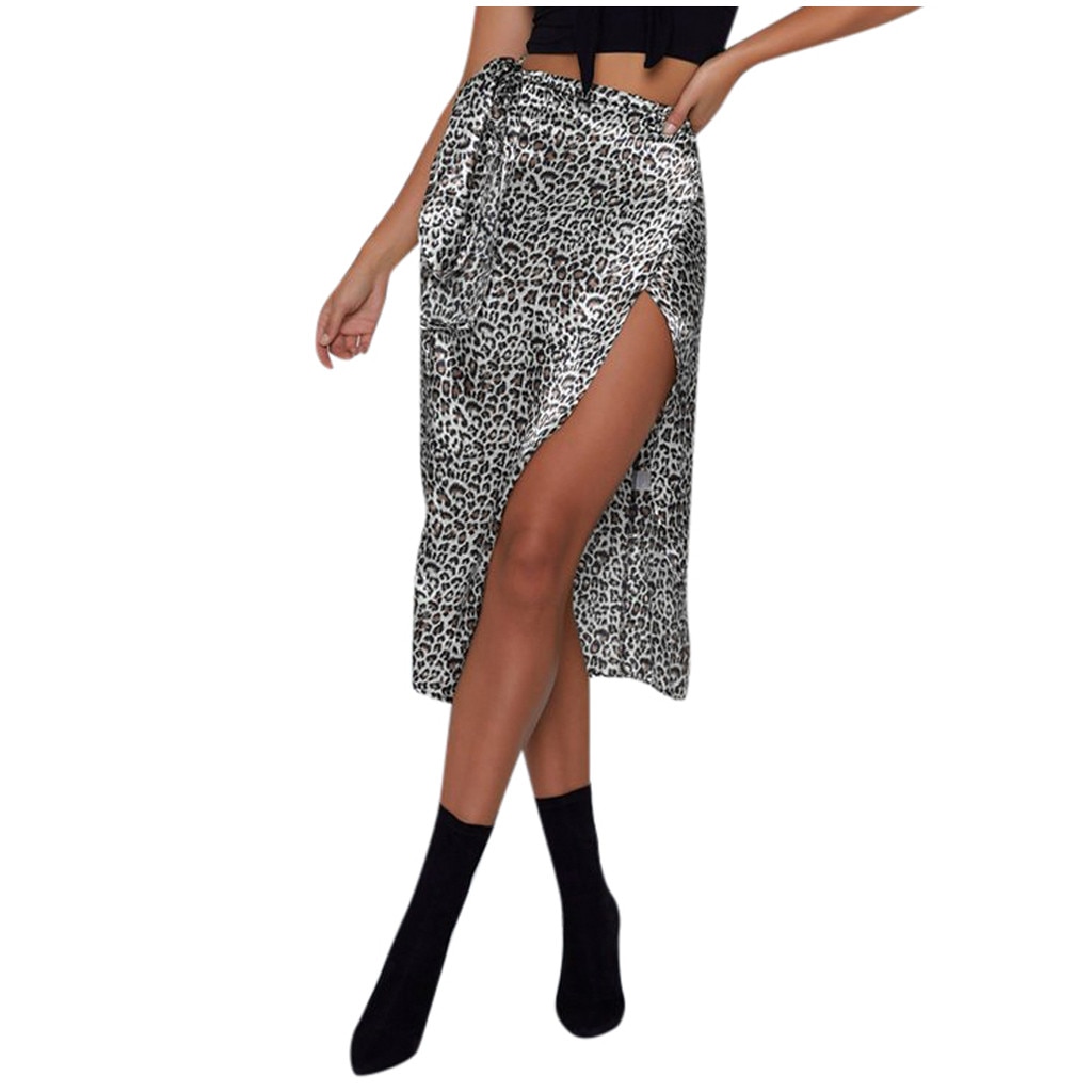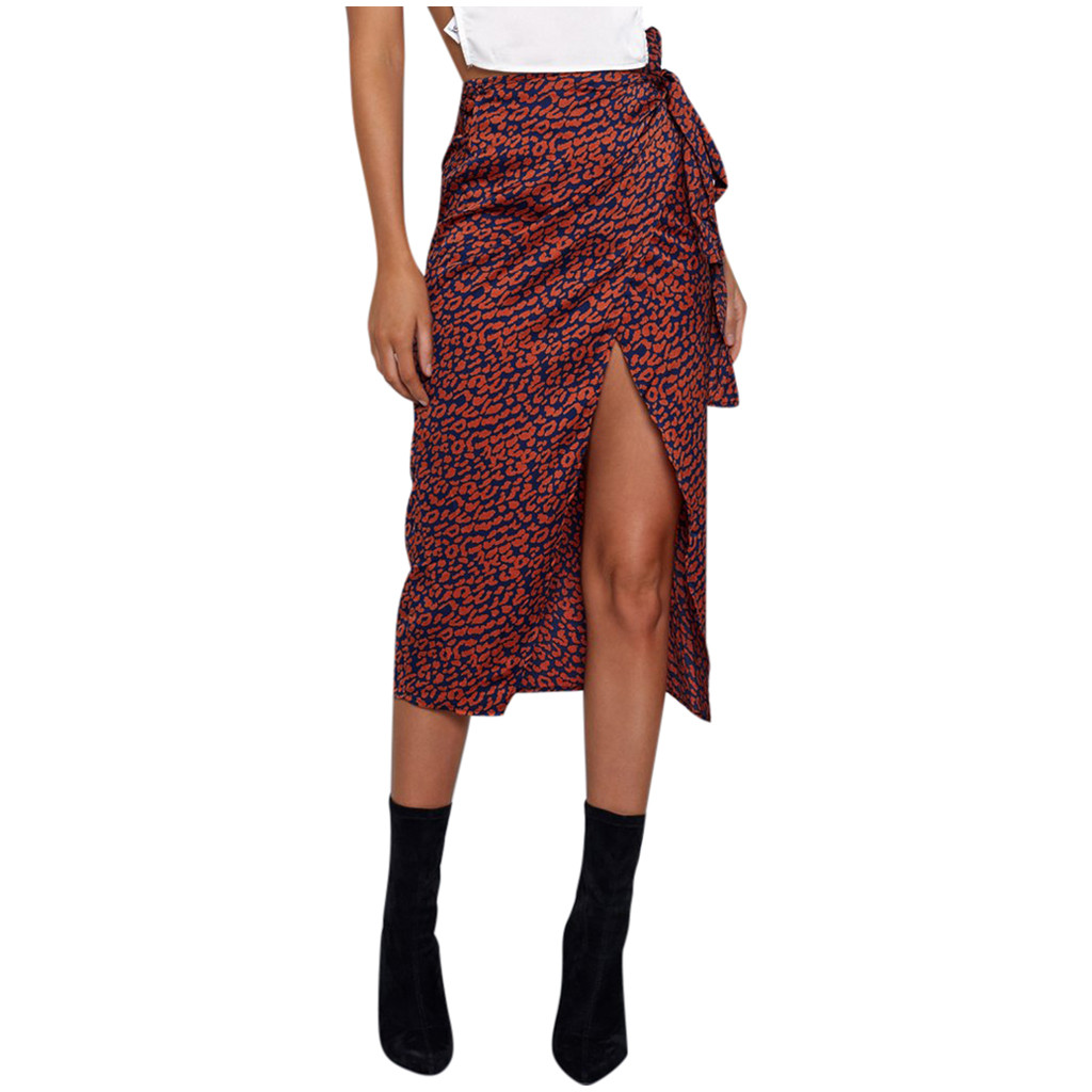 Leopard Printing Wrap Bow Split Skirt