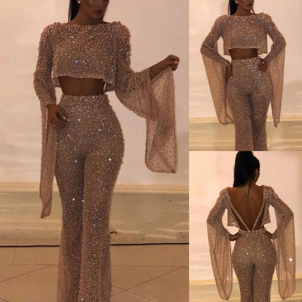 Sequins Bat Wing Sleeve Night-Club Jumpsuit