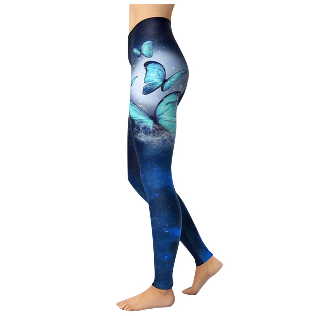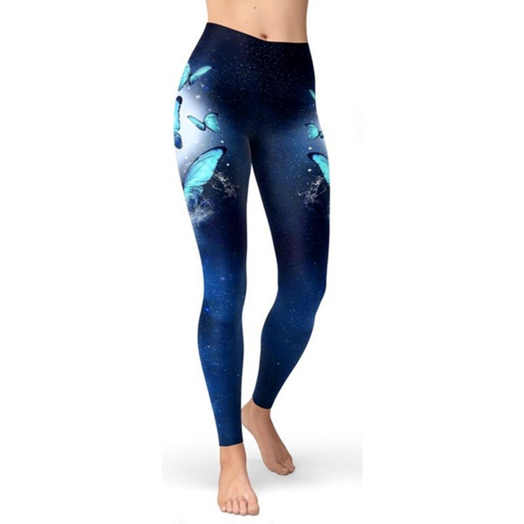 Sky Blue Butterfly Printed Leggings