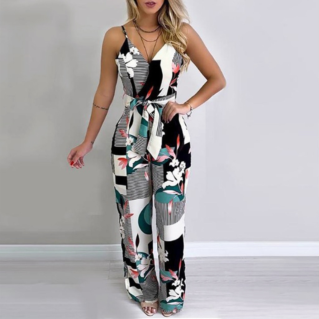 Striped Printed Sleeveless Jumpsuits